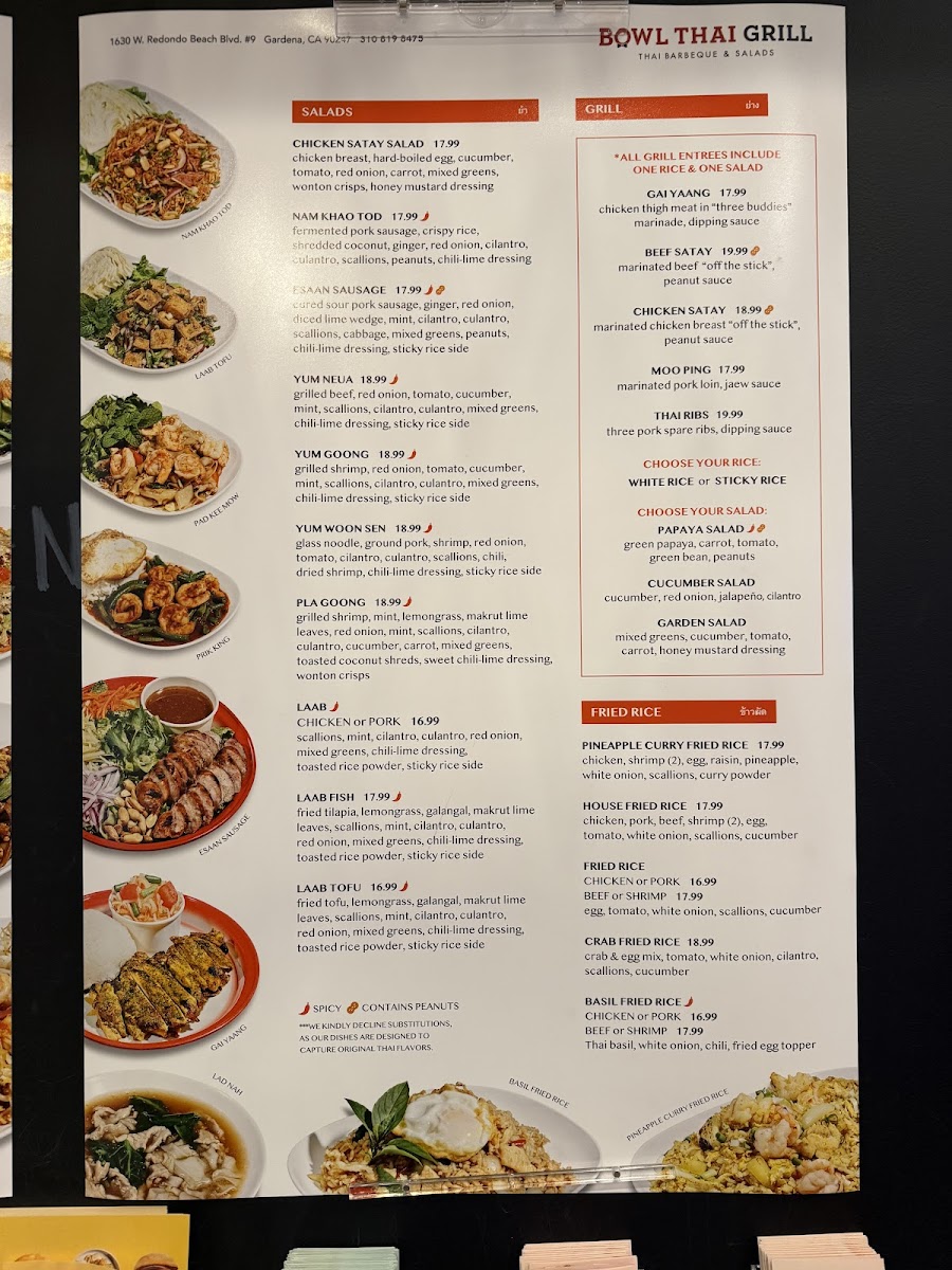 Bowl Thai Grill Menu
